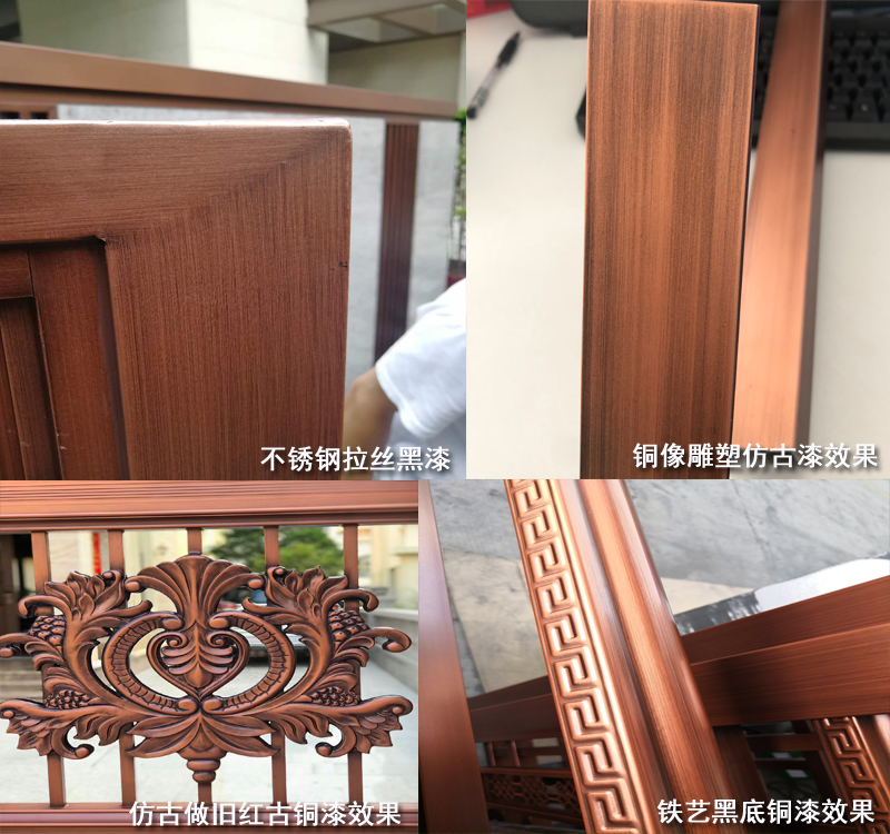 等底漆完全干燥,在其上面噴涂古銅色漆,待古銅色漆完全干透方可在其表面噴涂拉絲黑漆,拉